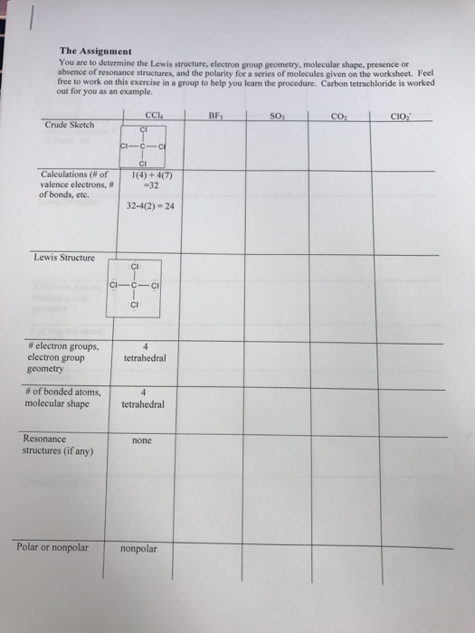 Chapter 7 worksheet spring 2007 page 3 of 5 10 fill in the table below to determine the molecular geometry for the following molecules. Identify the molecules in the table above that are polar.